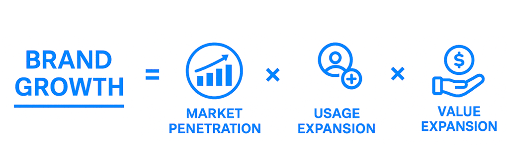 Brand Growth = Market Penetration × Usage Expansion × Value Expansion